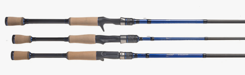Fiberglass, composites, and titanium-reinforced rods resist corrosion and handle high-stress fights.